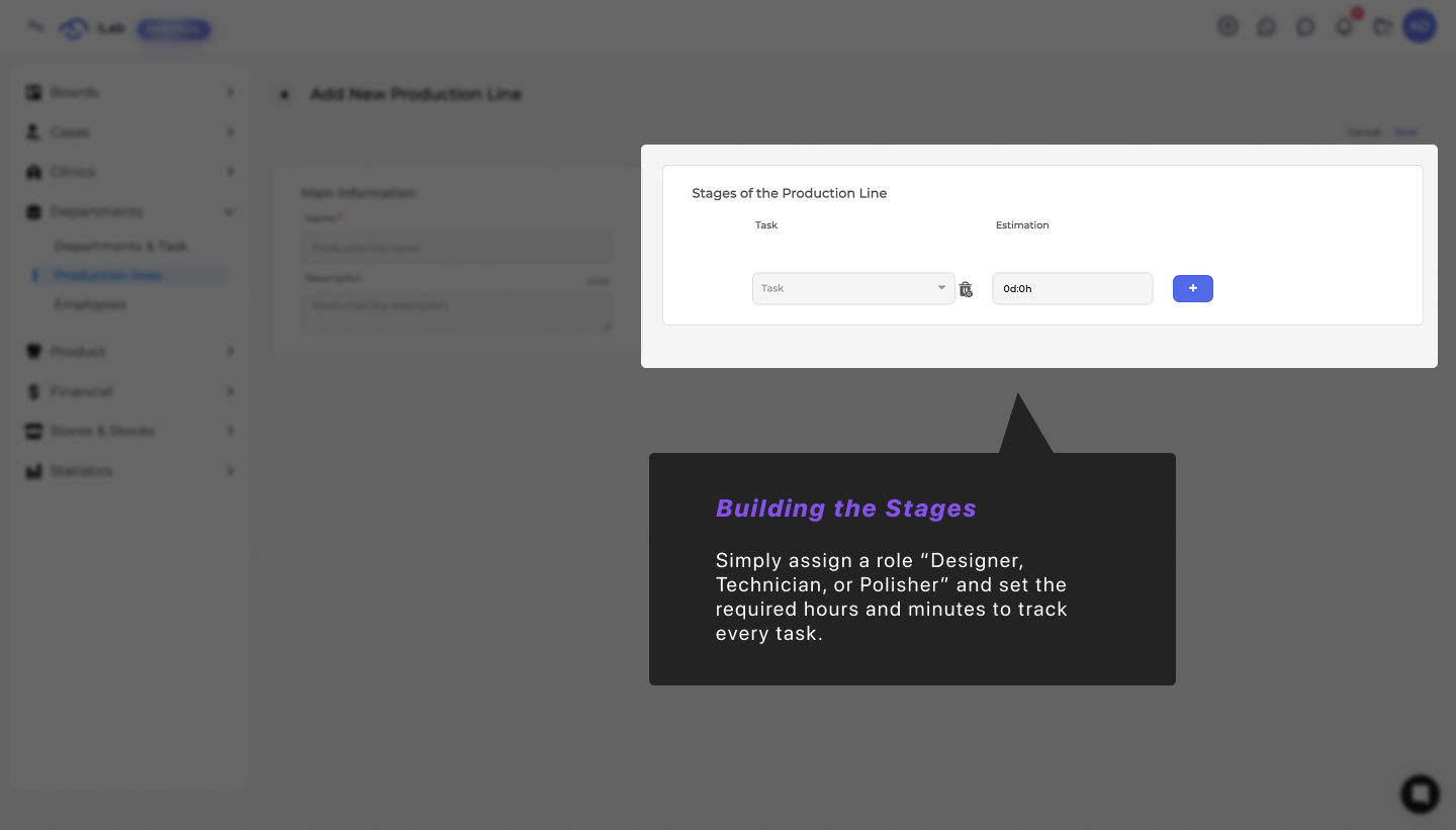The Production Line page is the "recipe" for your products. It maps out exactly who does what and how long each step takes. By setting this up, you stop guessing and start knowing your lab’s true capacity. When you master your time, you master your profit.