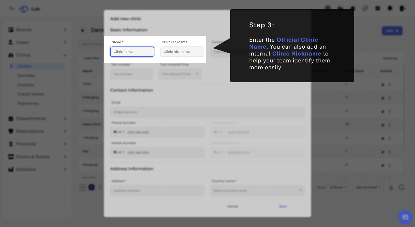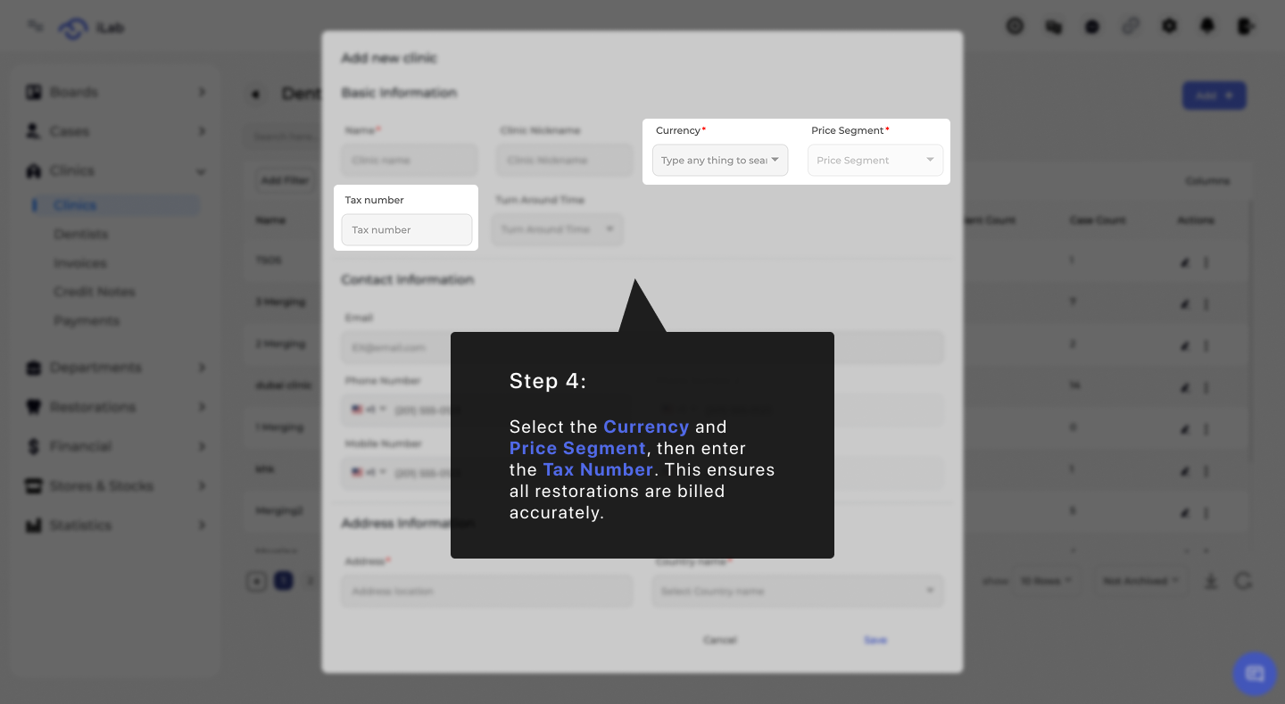 Set up a new clinic in iLab to manage partnerships. This guide covers entering clinic details, configuring tax and pricing segments, and setting shipping and turnaround times for smooth daily operations.