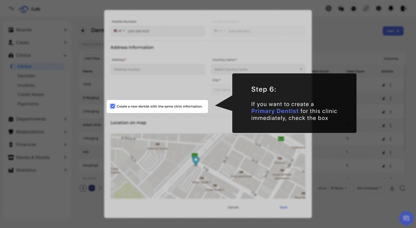 If you want to create a Primary Dentist for this clinic immediately, check the box provided in this section. This option allows you to quickly link a dental professional to the facility using the same clinic information you have already entered.