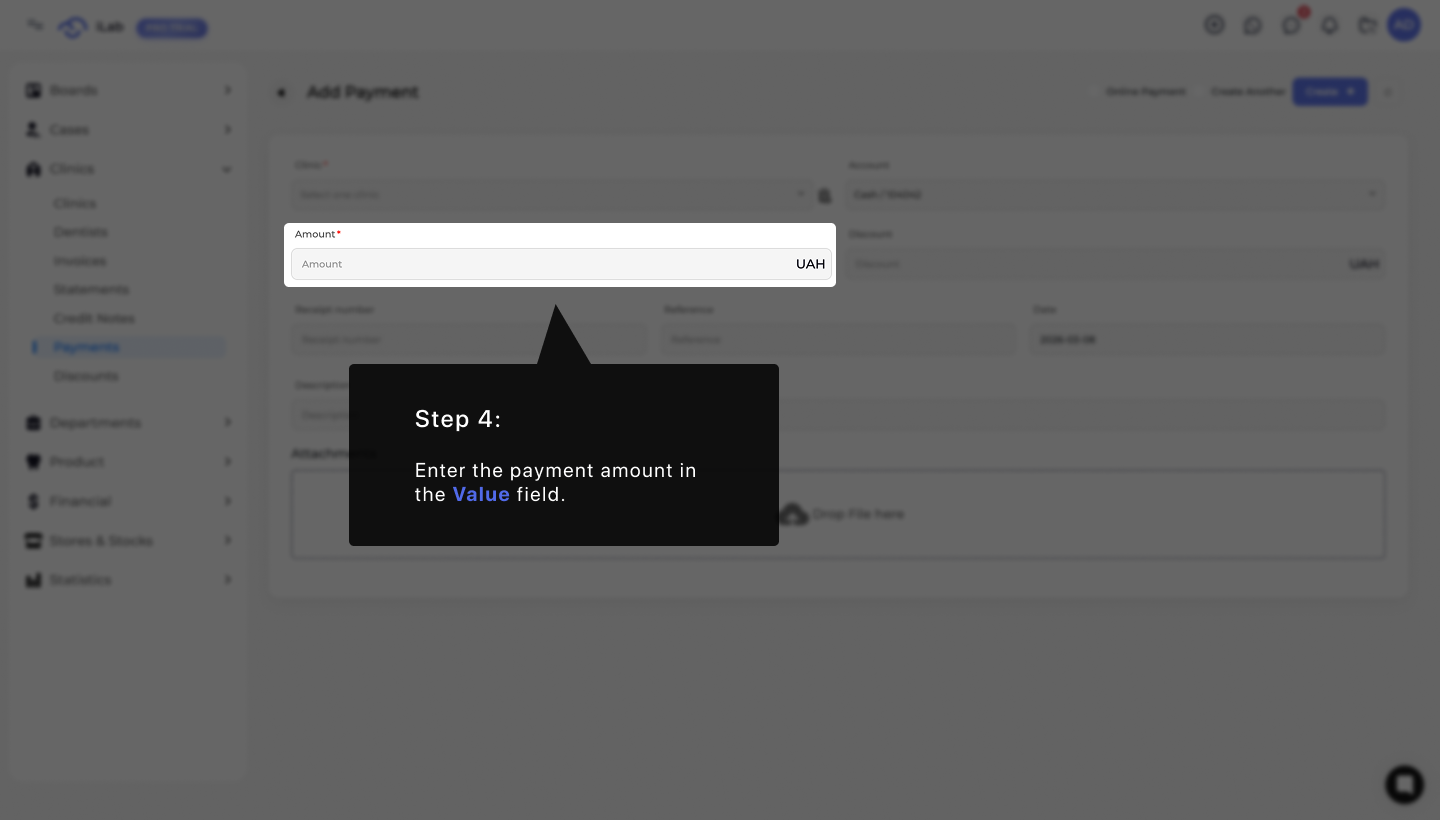 Record payments accurately to manage your clinic's balance. This guide explains entering amounts, linking them to invoices, and using the online payment link to speed collections.